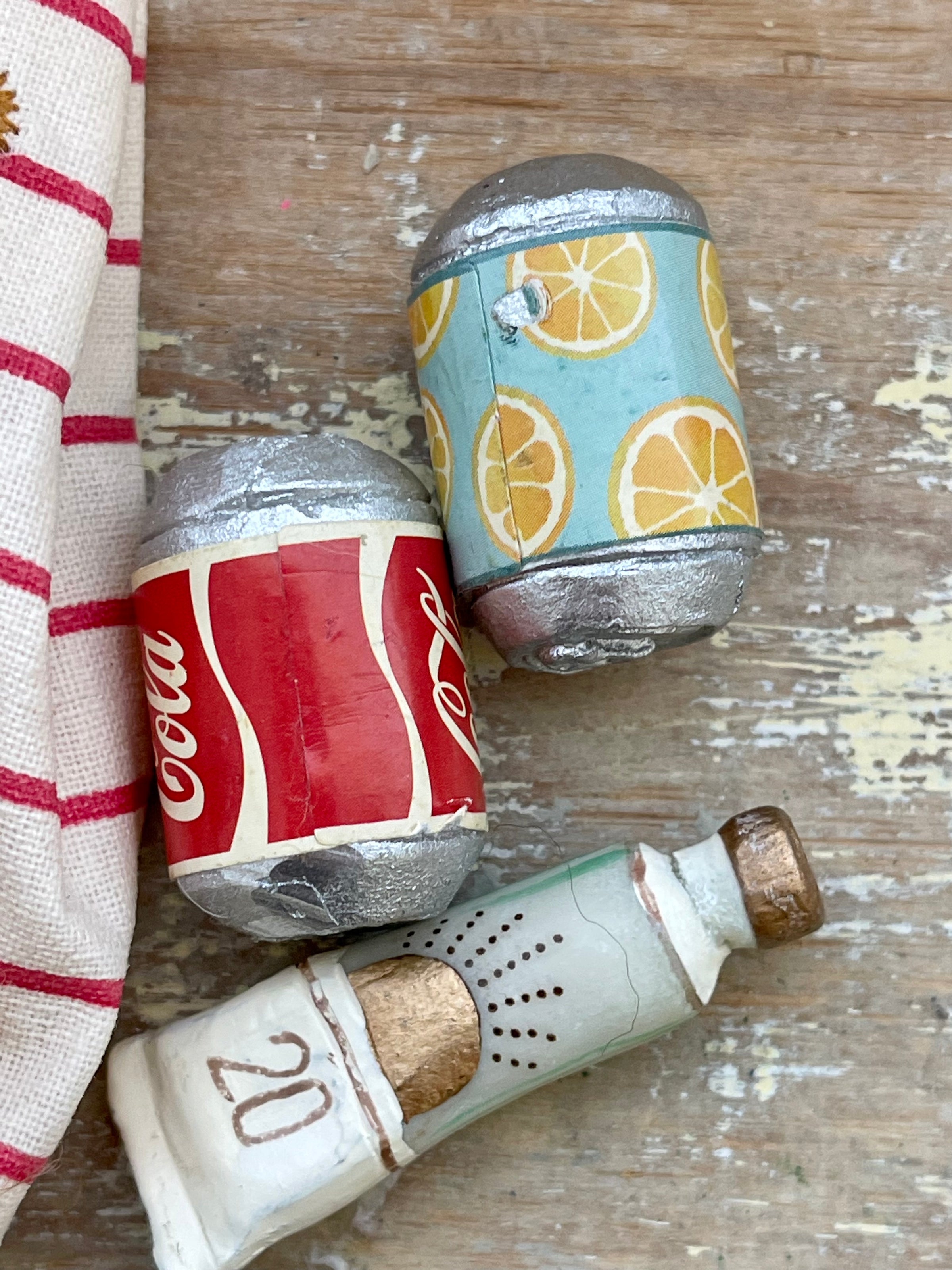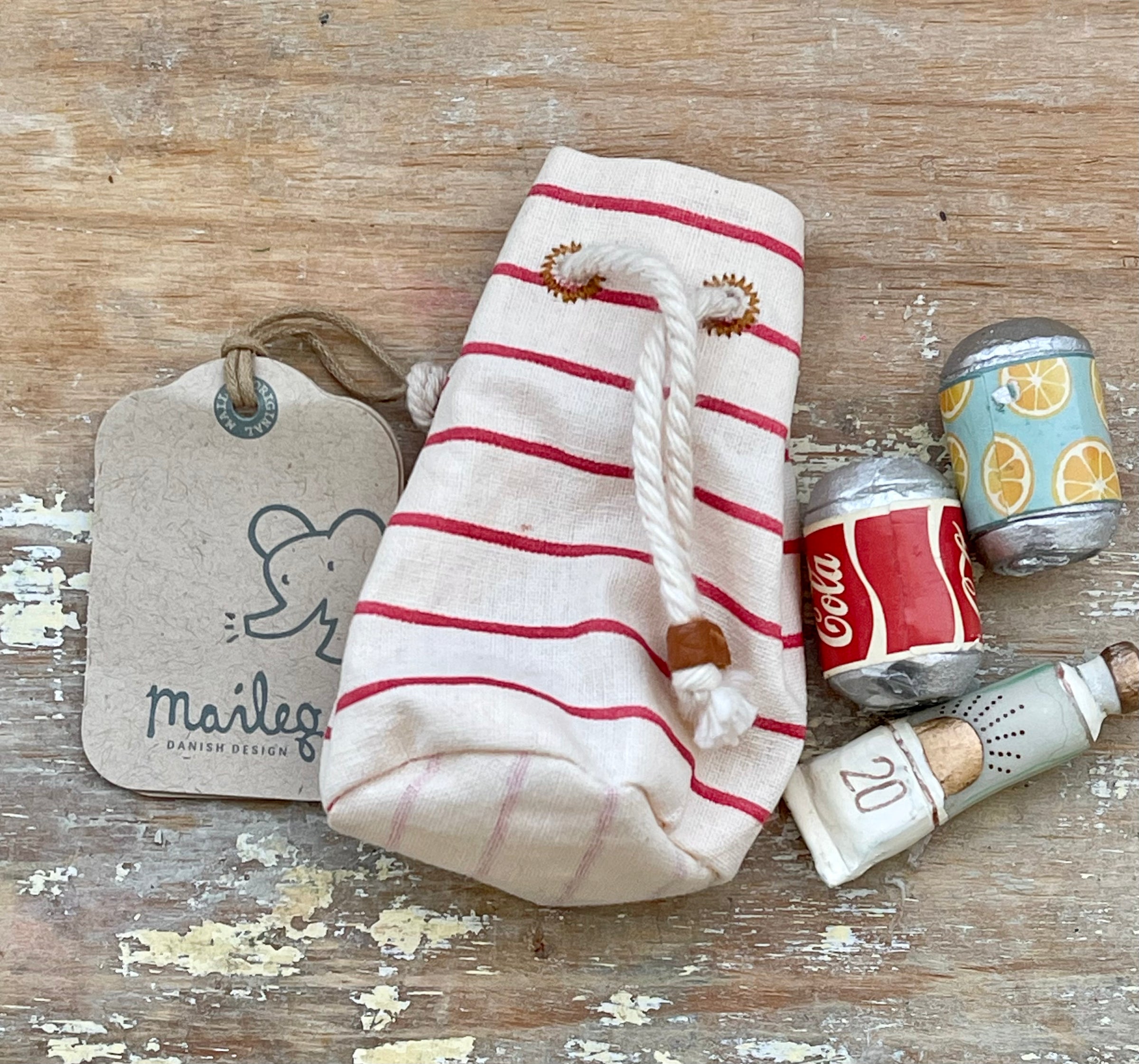 SALE 50% OFF Maileg Miniature Beach Bag Essentials ex display in excellent condition one of the cans has a small sticker peeled a bit tags attached please view images no returns on ex display stock.